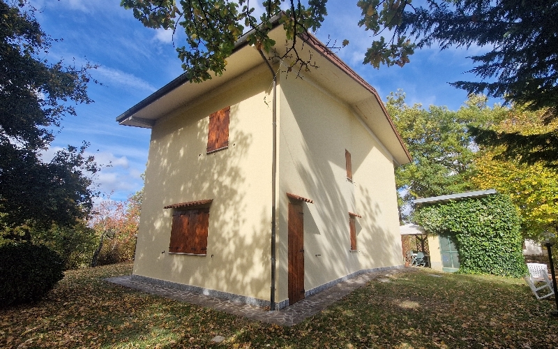 MONTESE - frazione (MT/V13) in posizione dominante e panoramica, villa indipendente su due livelli con al ***.*******.** ampio soggiorno con camino, cucinotto, bagno e garage; al ***.*******.** quattro camere, bagno e balcone; piccolo accessorio ad uso ricovero attrezzi.