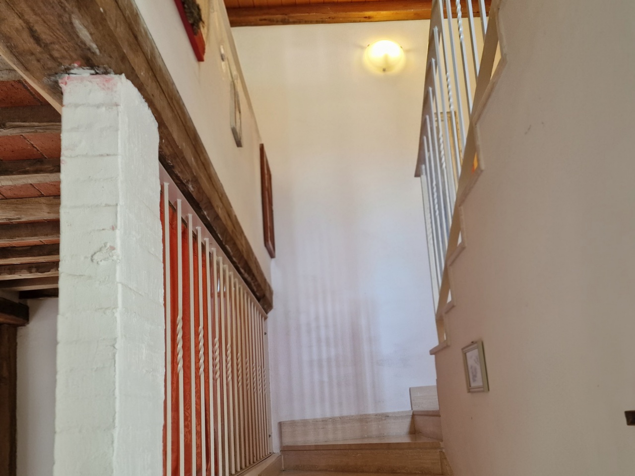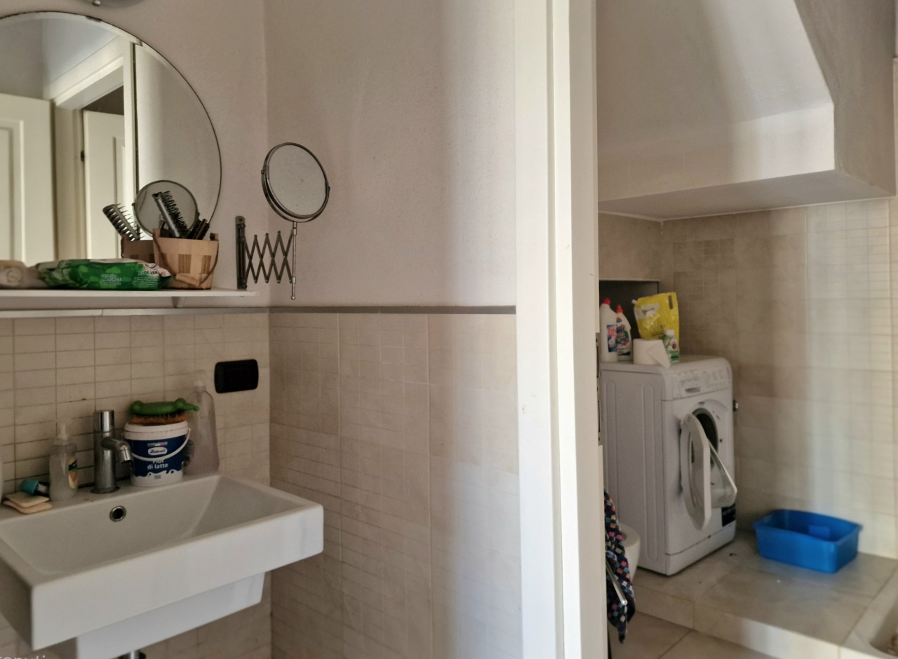 L'abitazione, disposta su due livelli, si compone al piano terra di accogliente e ampio soggiorno con angolo cottura, bagno e comodo studio (utilizzabile anche come camera); al piano primo due camere da letto, entrambe servite da bagno privato.