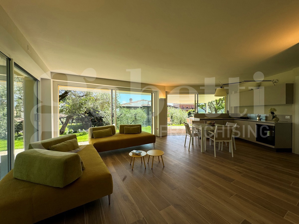 Attualmente la propriet si divide in: - un appartamento al piano terra composto di soggiorno, cucina a vista e tre camere da letto; - un appartamento al piano primo composto di zona giorno (con splendida vista lago), tre camere da letto, un terrazzo coperto di circa 12 mq, un primo balcone di circa 16 mq e un secondo di circa 8 mq; - un grande monolocale al piano secondo utilizzabile anche come una stupenda suite matrimoniale con bagno privato e terrazza, sempre con vista lago. Il giardino, di circa 660 mq, e la piscina privati sono il luogo perfetto per rilassarsi e rinfrescarsi nelle giornate estive.