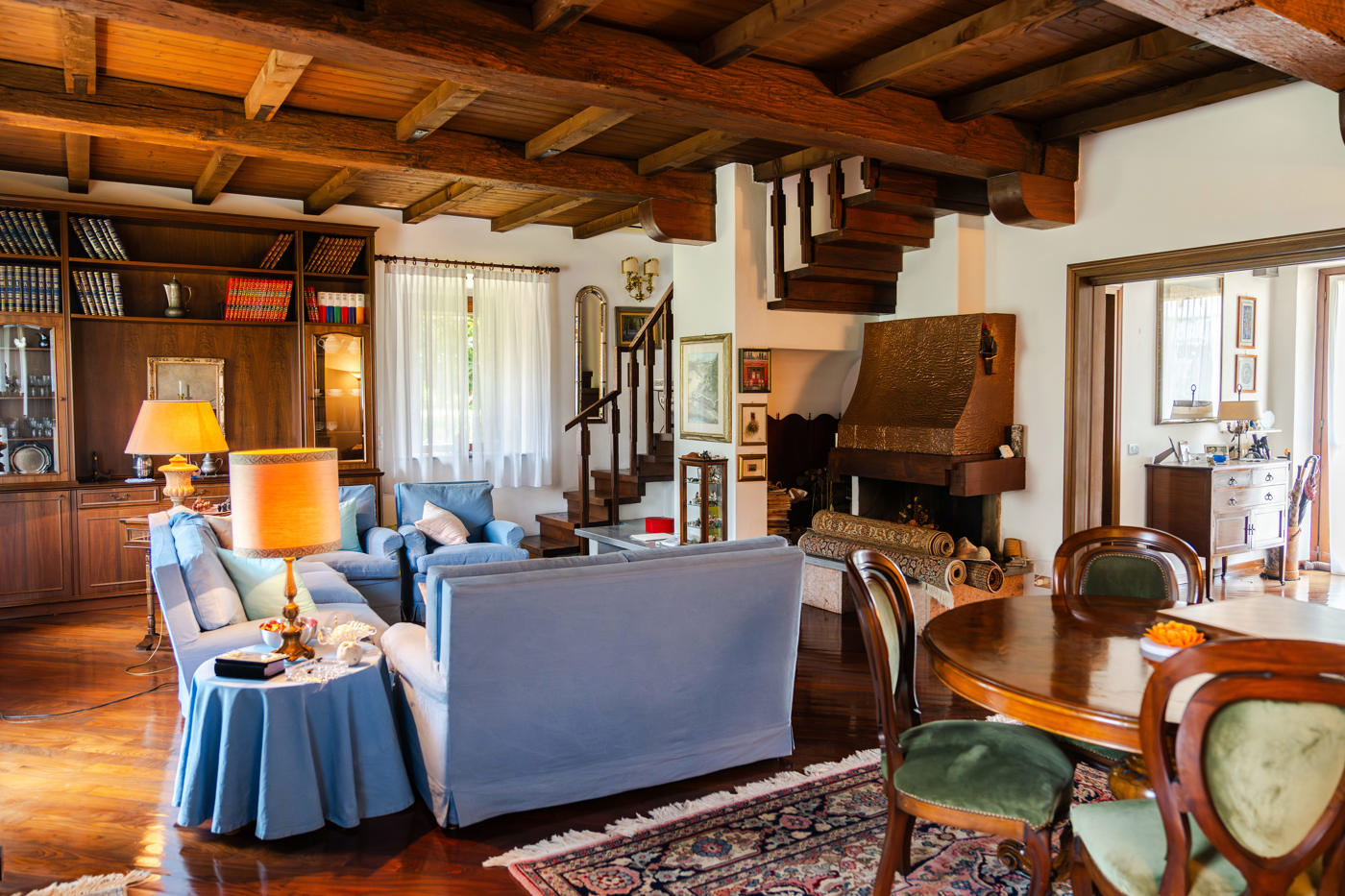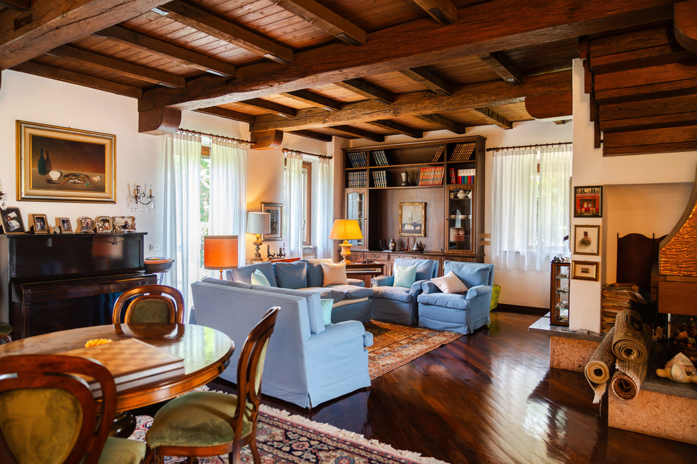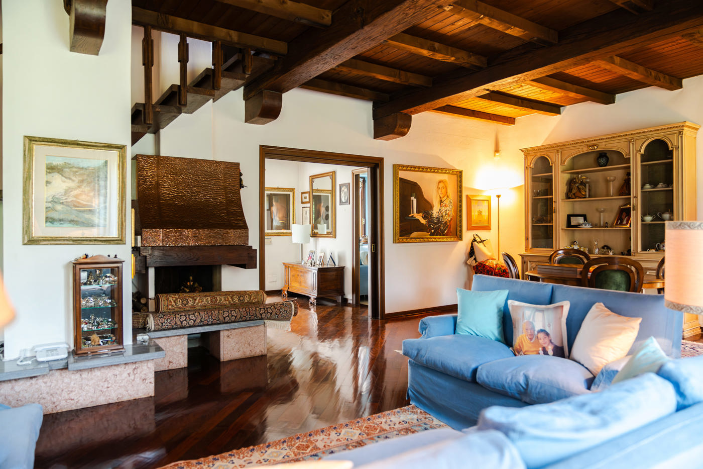 Limmobile dispone di 5 locali, 2 bagni e 2 terrazzi, con dettagli di pregio come il camino e le travi a vista.