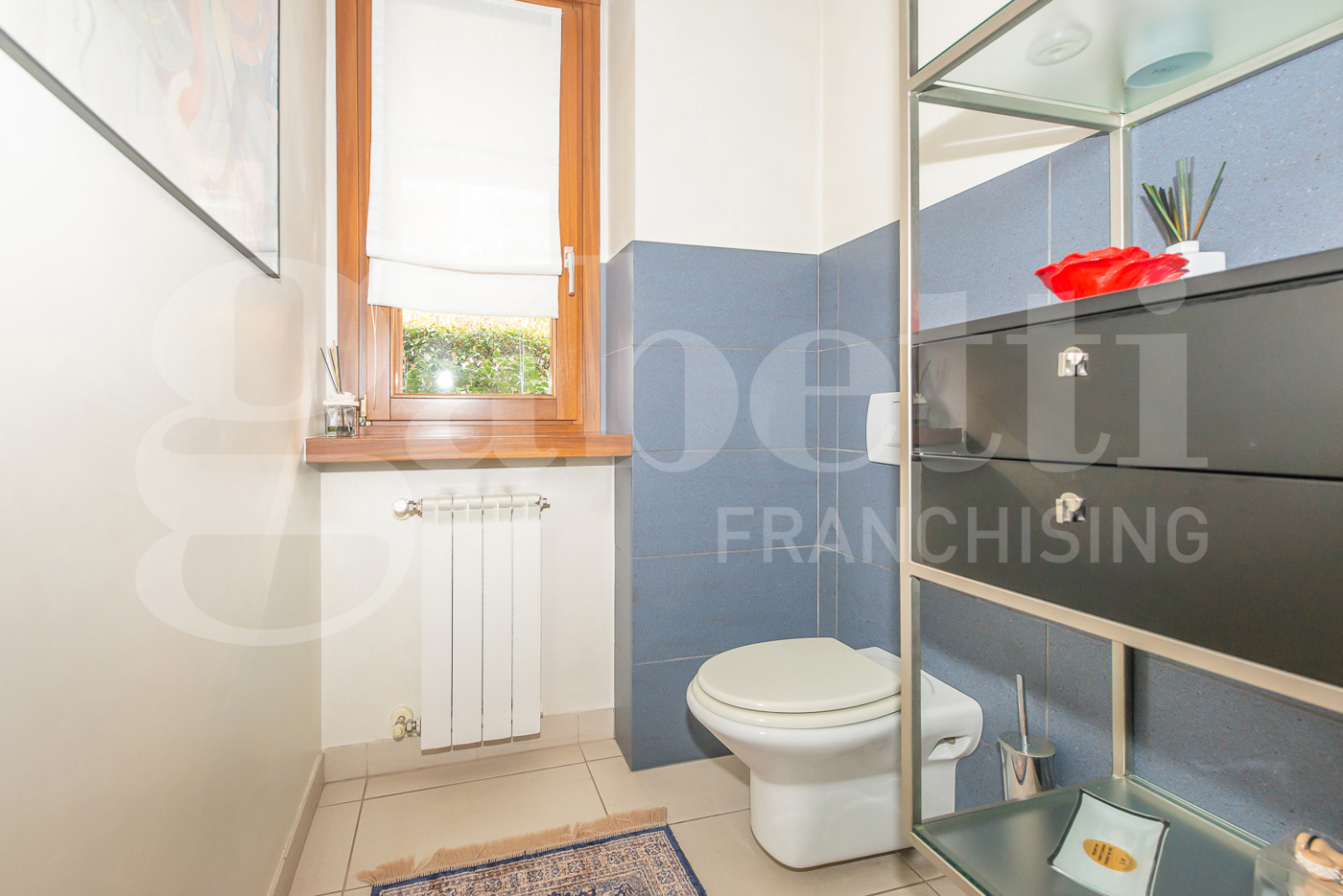 Completa il piano terra un bagno finestrato con zona lavanderia dedicata, perfettamente integrata per garantire ordine e praticit senza rinunciare allestetica.
