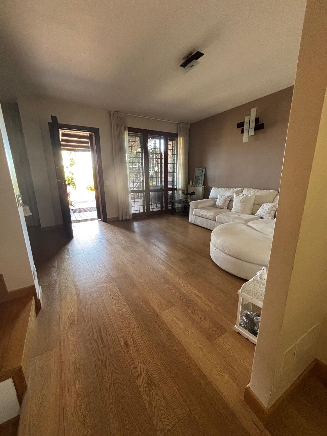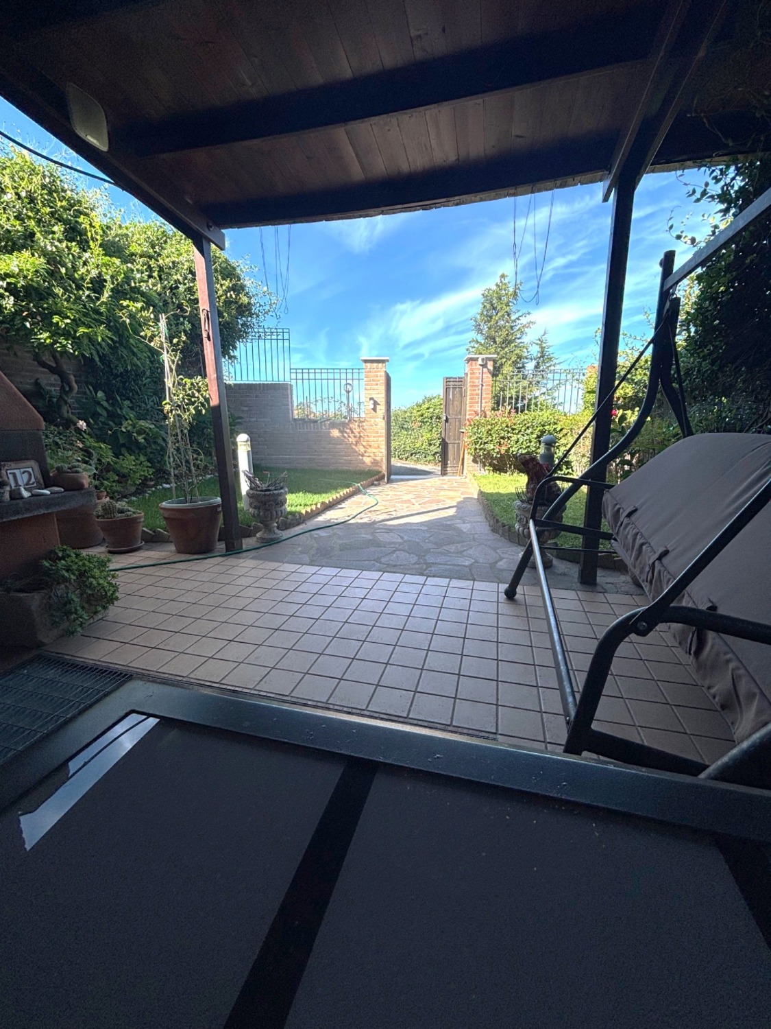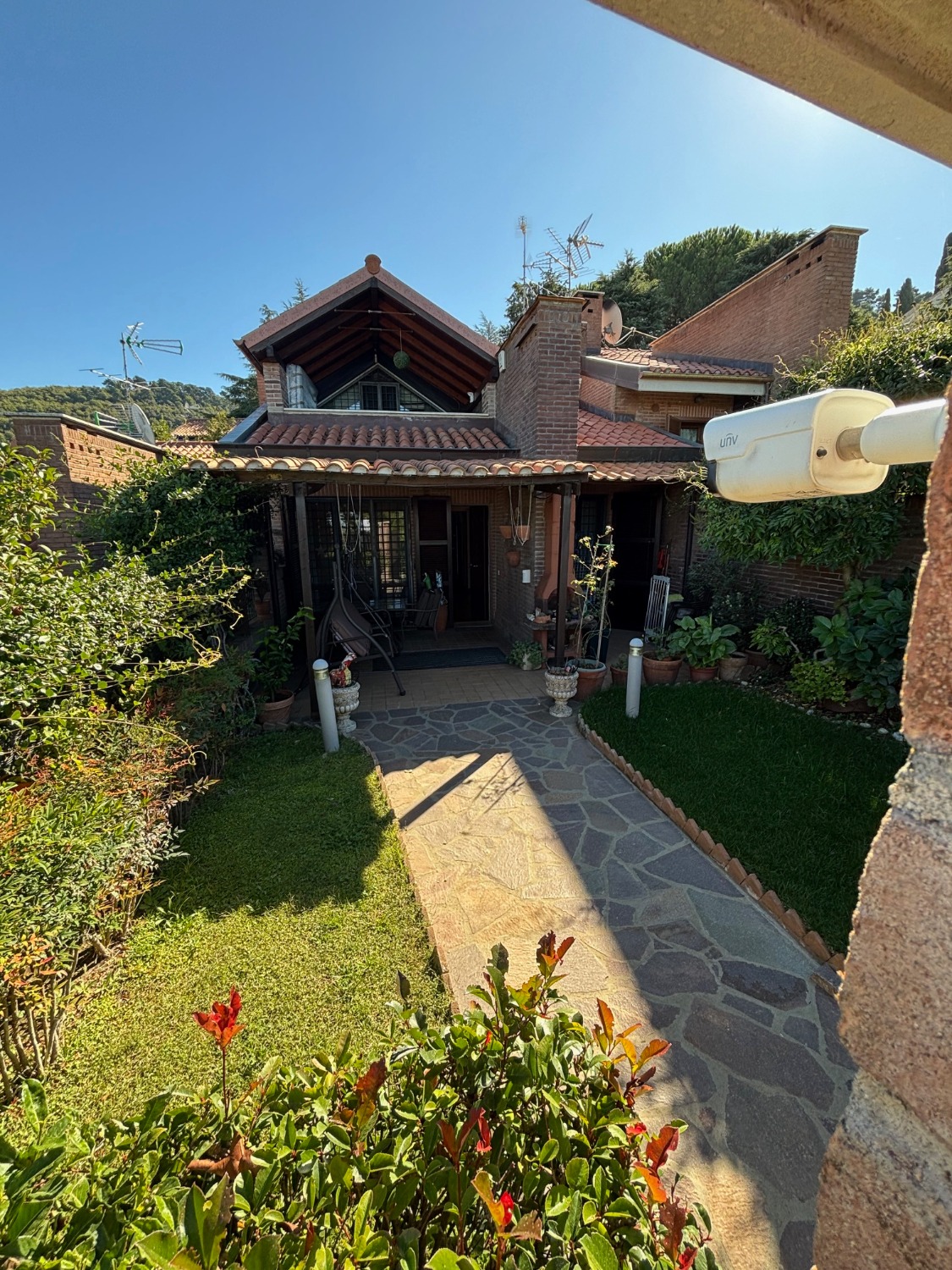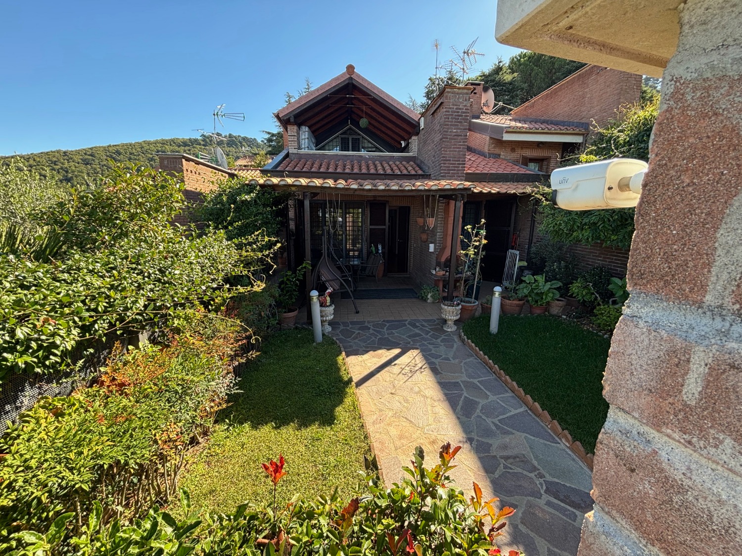 ROCCA DI PAPA - Via San Sebastiano Adiacente tutti i servizi principali, tra relax e panorama mozzafiato in residence di sole villette con entrata indipendente, trattiamo la vendita di una porzione di villa centrale in trifamiliare composta da ingresso pedonale con accesso ad un giardino ben curato in parte mattonato dove si accede ad un ampio salone con predisposizione cucina, due ampie camere da letto, bagno e altro terrazzo in camera; al piano primo ampia camera mansarda con terrazzo panoramico e bagno; al piano seminterrato sala hobby con stufa a pellet ad aria, cucina a vista, angolo tv e bagno.