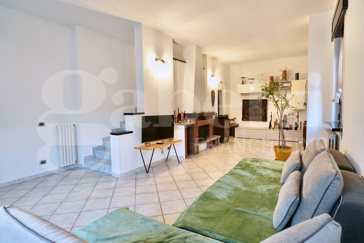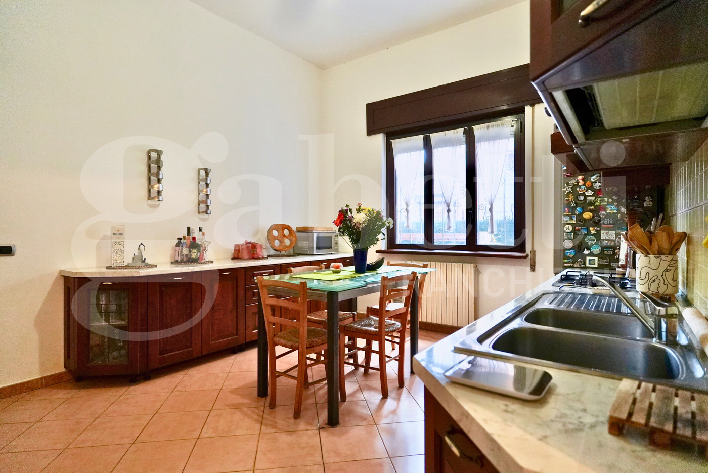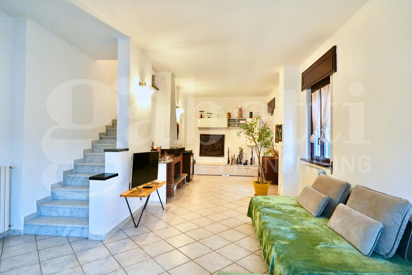 Completano il livello una cucina abitabile di generose dimensioni, un bagno, un pratico ripostiglio sottoscala e una comoda lavanderia.