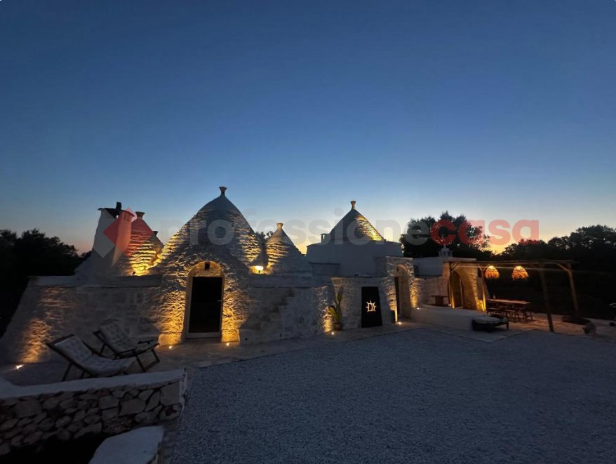 Composizione attuale Due camere da letto, di cui una con camino Piccolo salone Cucina con camino Bagno Trulli originariamente separati oggi sapientemente collegati grazie a un importante restauro Plus tecnici e impiantistica Fossa Imhoff certificata per 12 persone Predisposizione per bagno esterno da giardino Impianto elettrico nuovo, potenza 10 kW Illuminazione esterna del giardino Pozzo artesiano automatico (profondit ca. 220 m) con riempimento automatico cisterna Predisposizione per vasca idromassaggio esterna Climatizzazione in ogni ambiente con fan coil, attivabili in loco e da remoto Impianto di videosorveglianza Progetto approvato e RITIRATO ,CANTIERE IN ESSERE per espansione ricettiva Ampliamento di circa 150 mq per la struttura Piscina interrata 12 x 5 con patio e bar esterno Perch unica Autenticit e comfort convivono: il restauro ha preservato lanima dei trulli, integrando dotazioni moderne e un progetto di sviluppo gi pronto che rende linvestimento scalabile subito, sia per uso ricettivo sia come dimora privata di charme con rendita.