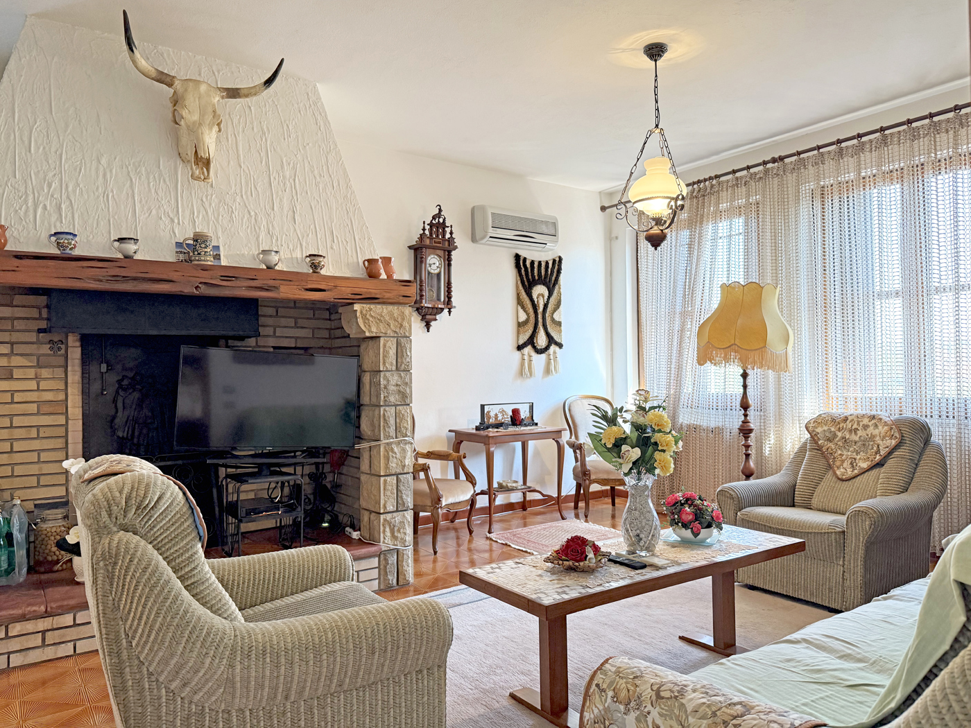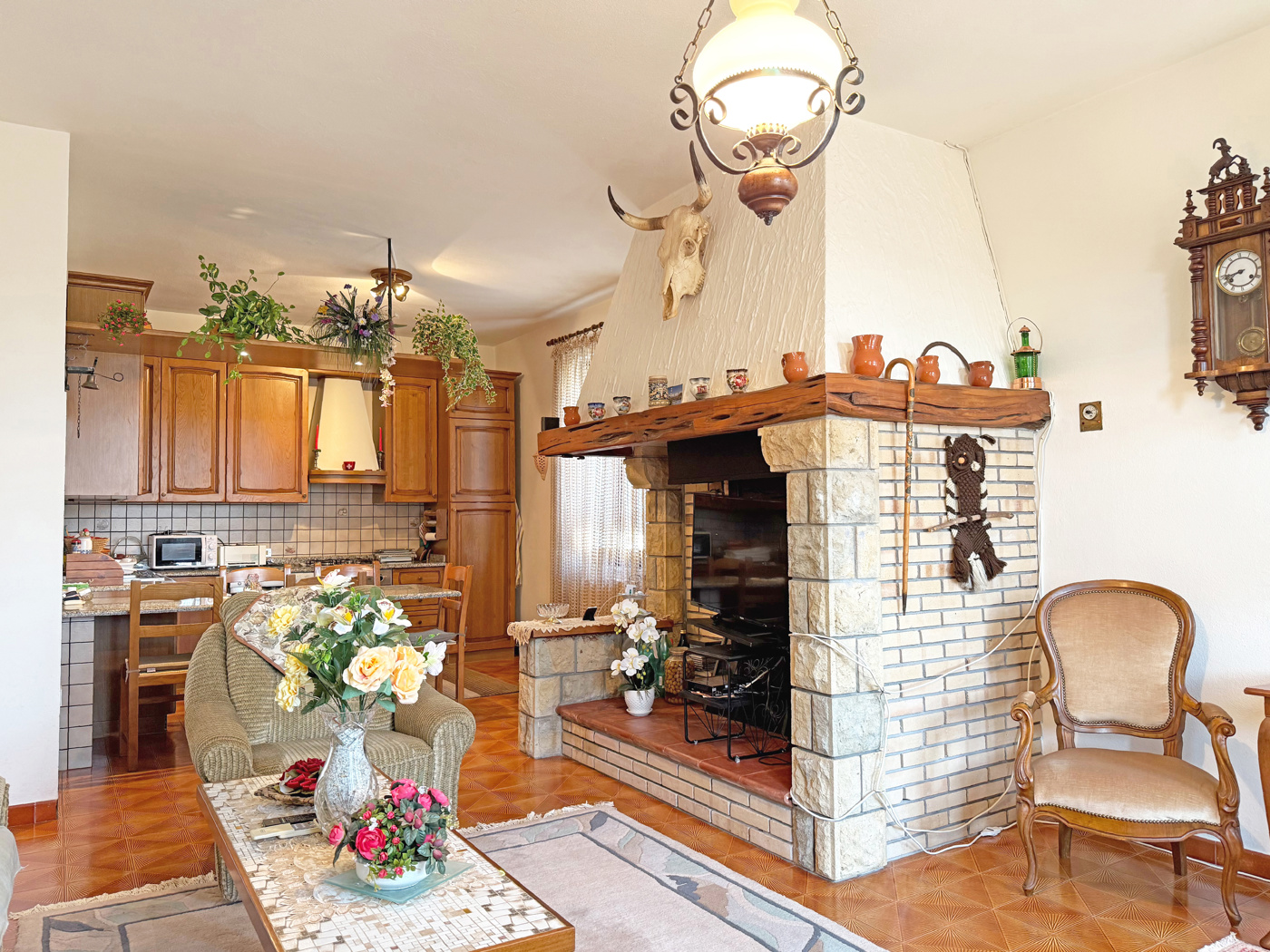 Labitazione, edificata negli anni 80, si sviluppa principalmente al piano terra ed composta da ingresso, soggiorno con camino e cucina a vista, disimpegno, tre camere da letto, bagno, ripostiglio, studio e due verande.