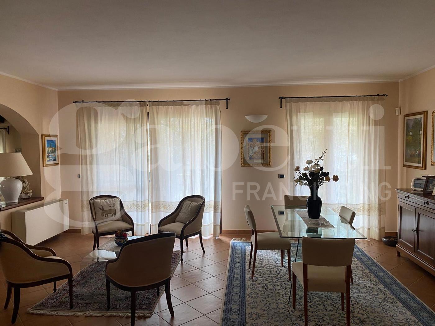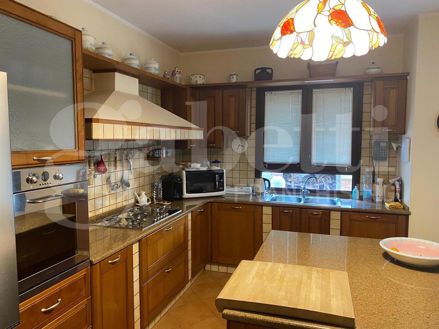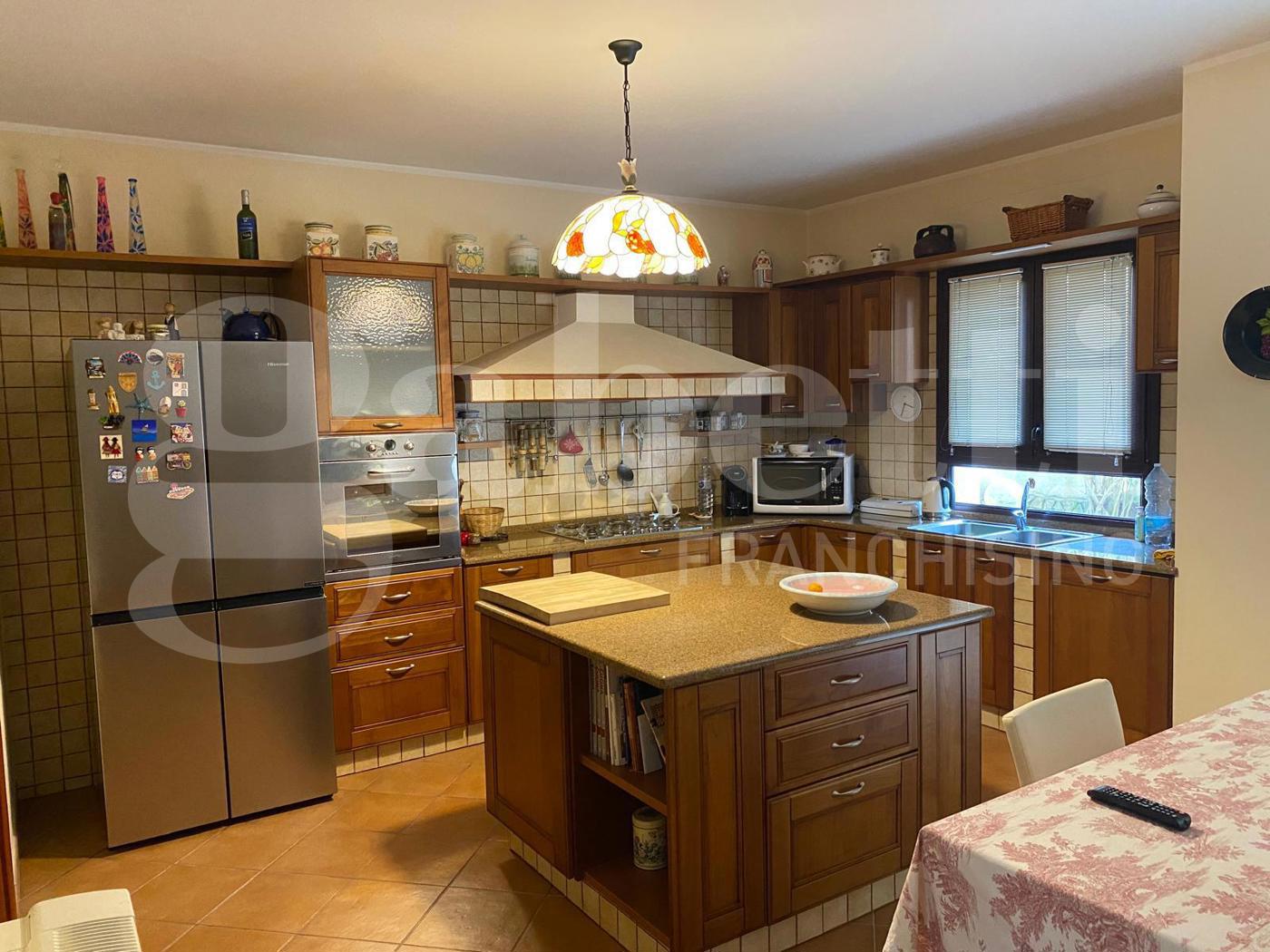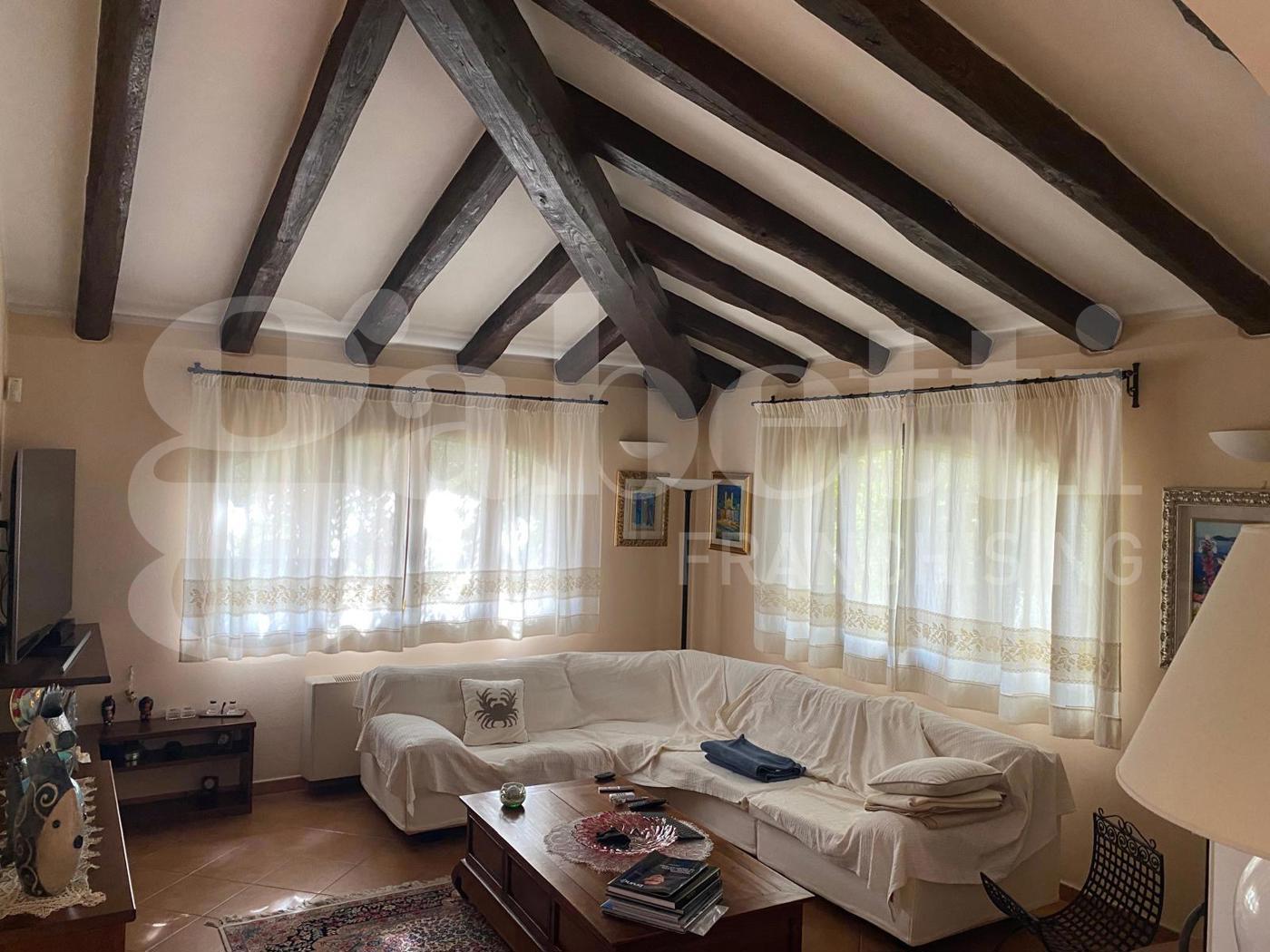 Internamente si compone di spazioso living che si affaccia su una veranda coperta di oltre 20 mq, una comoda cucina abitabile con separata dispensa, tre camere da letto di cui una con cabina armadio e bagno in camera e un pratico studio.