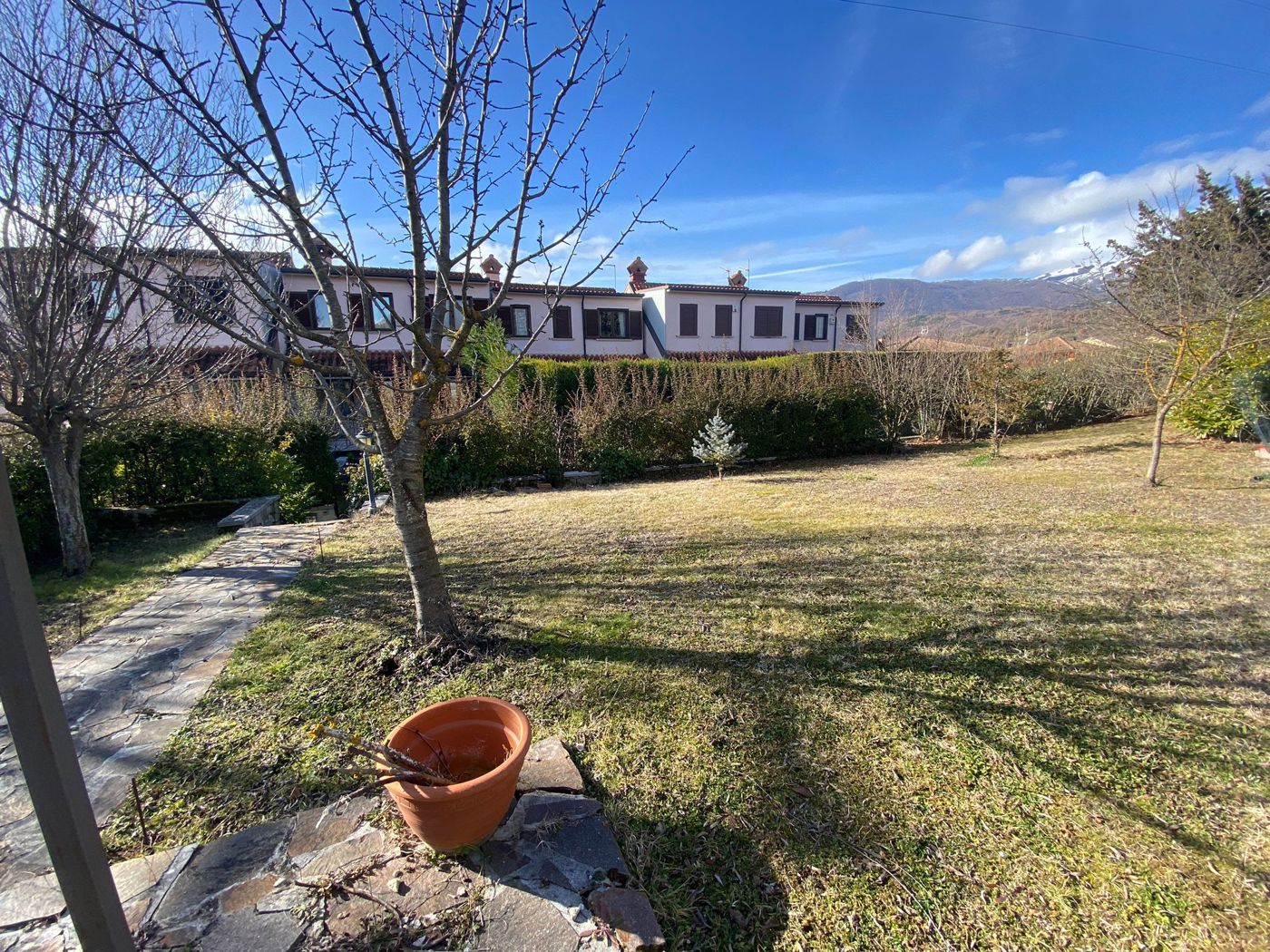 Piano Terra: grande soggiorno con camino, ambiente caldo e raffinato, con uscita diretta sul portico che conduce al giardino esclusivo di circa 350 mq, dotato di impianto di irrigazione, ideale per il relax e la vita allaperto.
