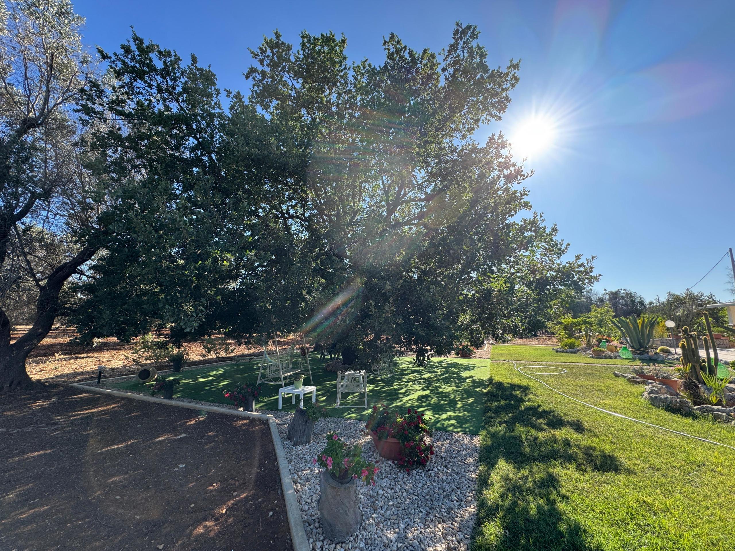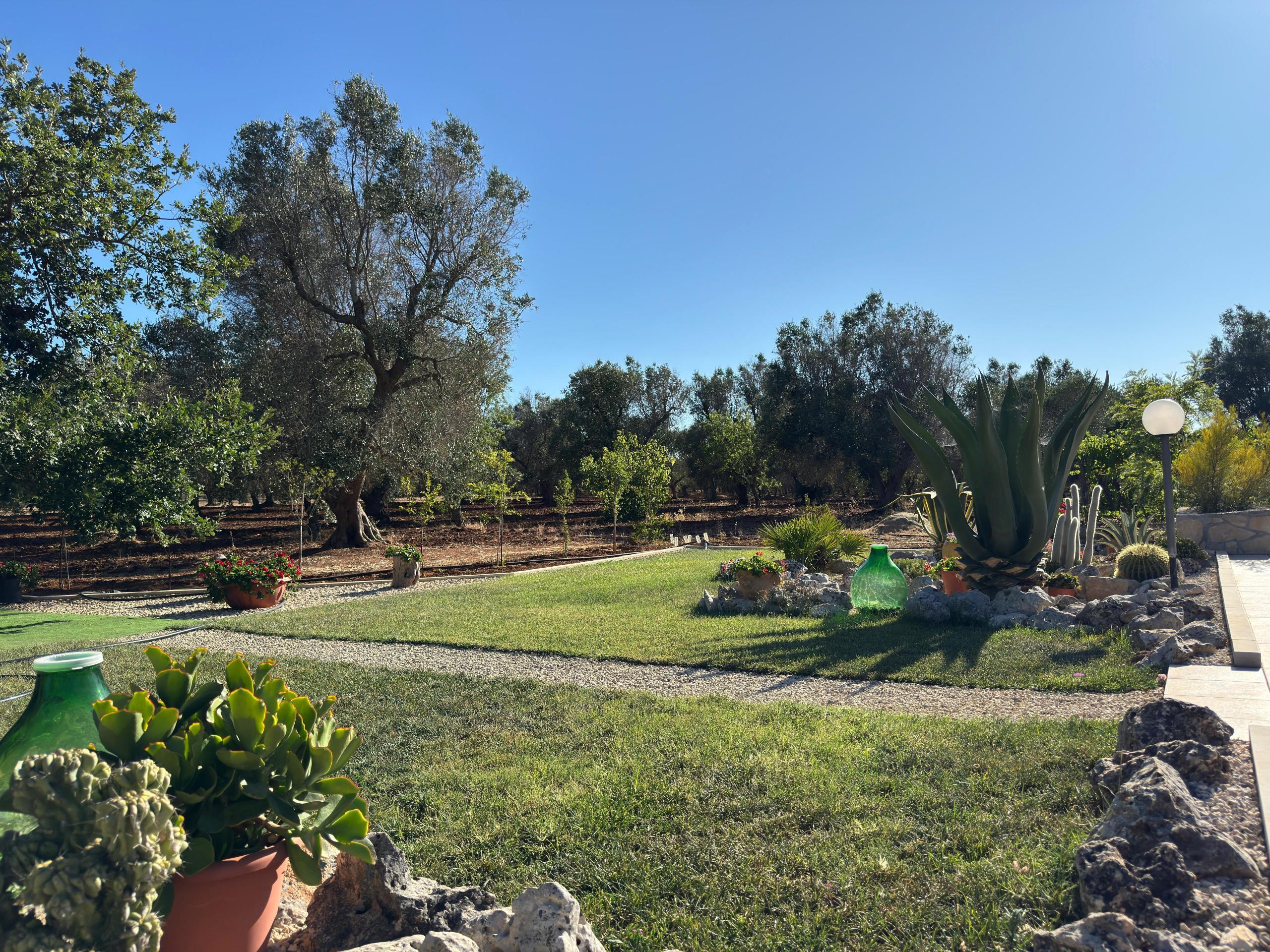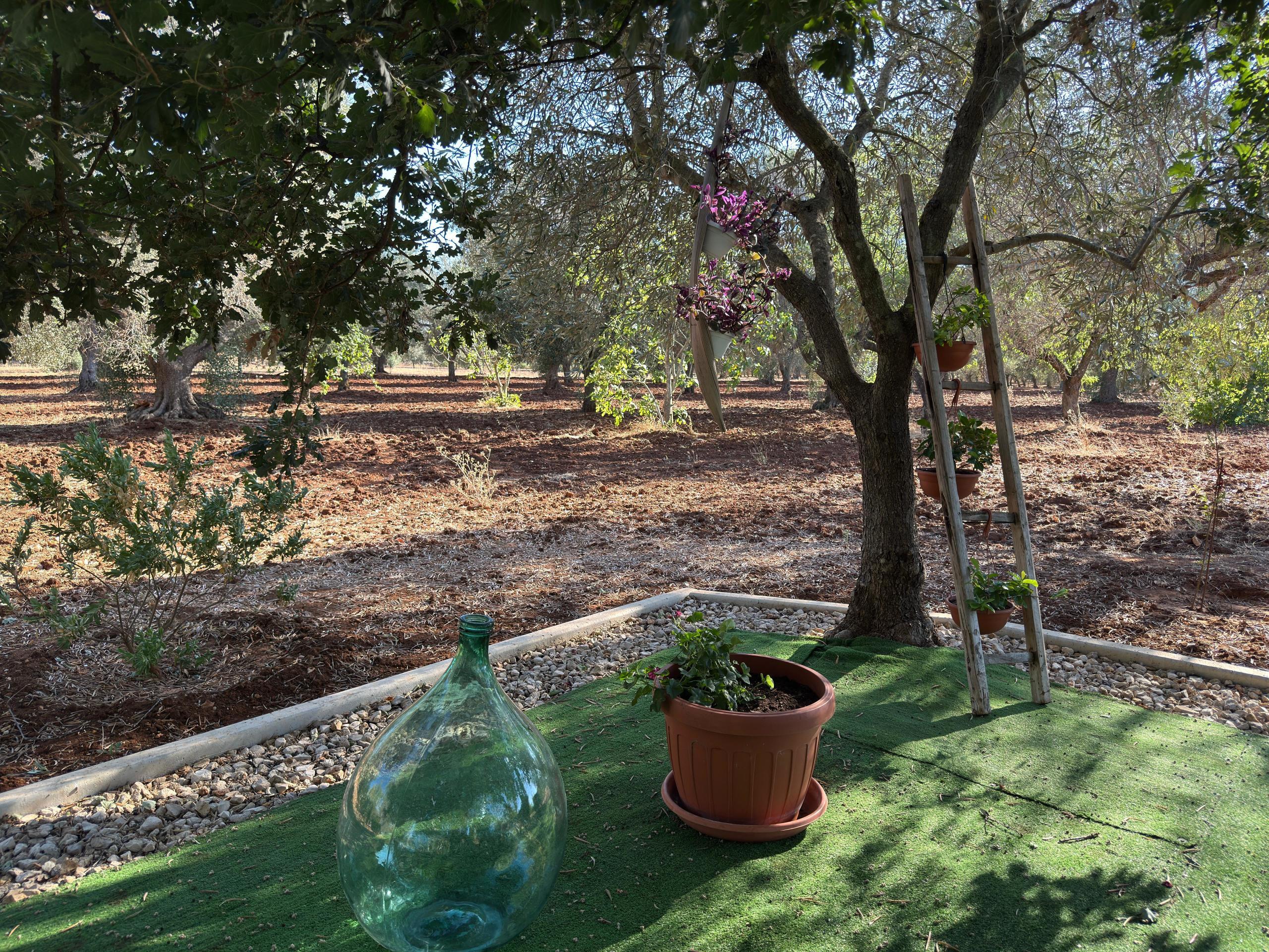 Il terreno che la circonda ospita 60 piante di ulivo in ottimo stato, un pozzo artesiano, un pozzo originale e tanto spazio verde per eventuali sviluppi futuri o coltivazioni.