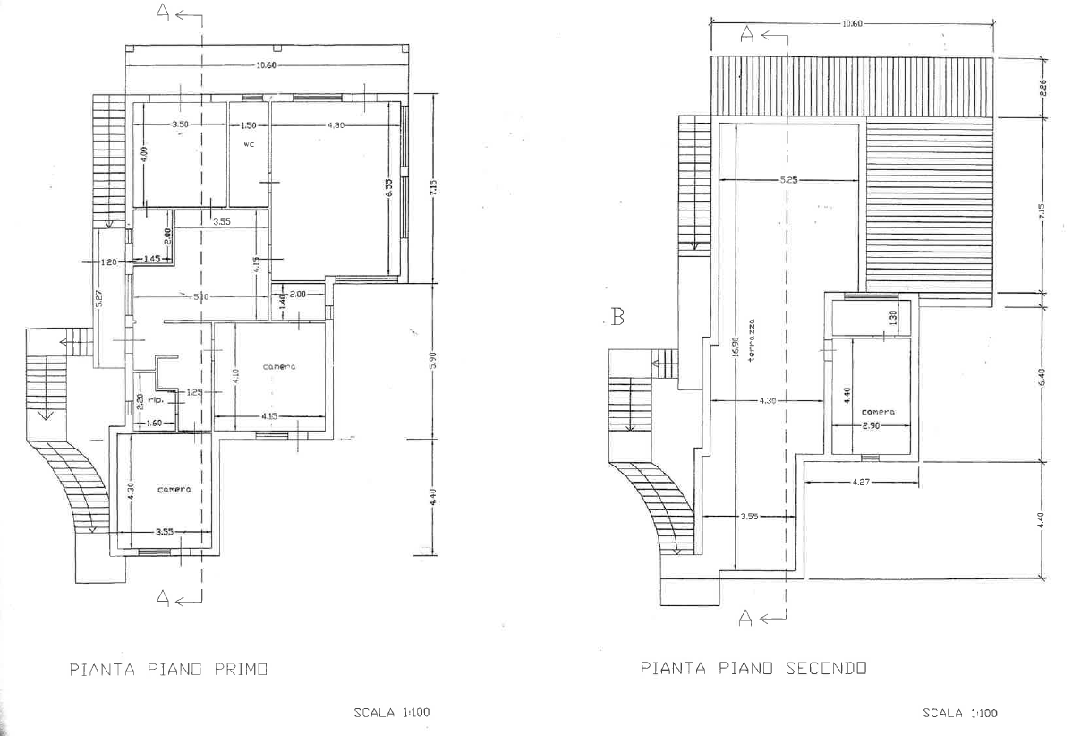 Piano 1° e 2°: mq 131 + terrazza e balconi di mq 96 c.a. e precisamente piano 1° mq 97 con ampio balcone coperto di mq 20 panoramicissimo composto da: salone pari a 2 vani, cucina abitabile, 2 camere e 3 wc. Al piano 2° troviamo una grande camera con bagno di mq 34 con grande terrazza panoramicissima di mq 78 c.a. che domina il porto di San Nicola.