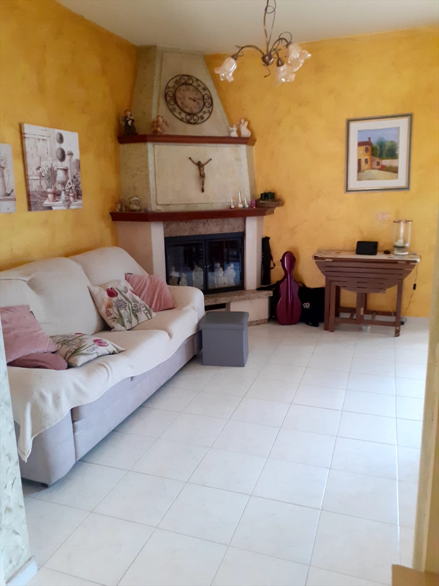 Una scala interna collega la taverna al piano terra, dove troviamo un'accogliente cucina abitabile, un salone luminoso con camino e un terrazzo di circa 24 mq, ideale per godere di pranzi all'aperto.