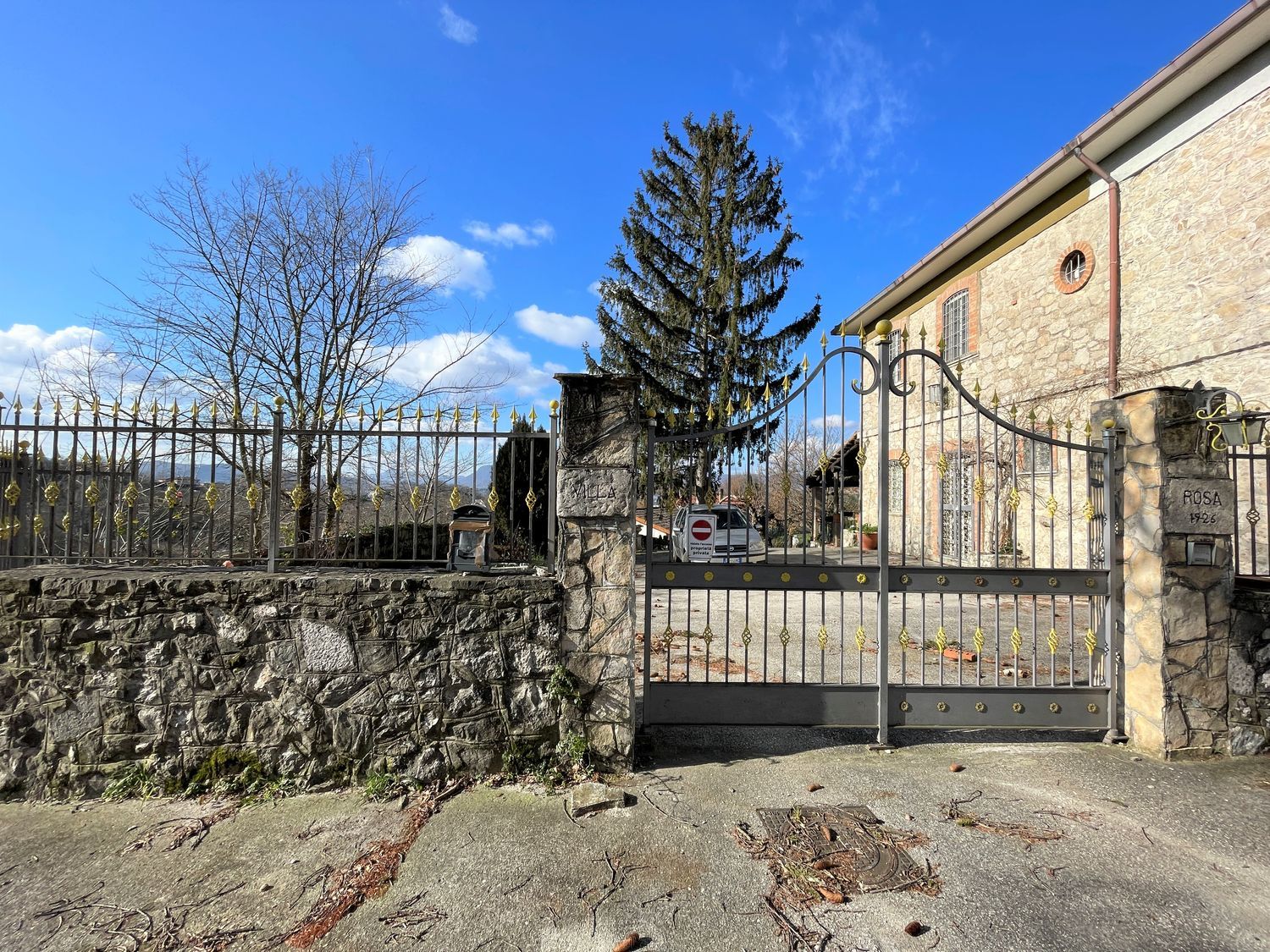 All' esterno la proprietà è delimitata da doppio cancello privato, ampio giardino circostante in parte pavimentato e comodo porticato in legno annesso all' ingresso.