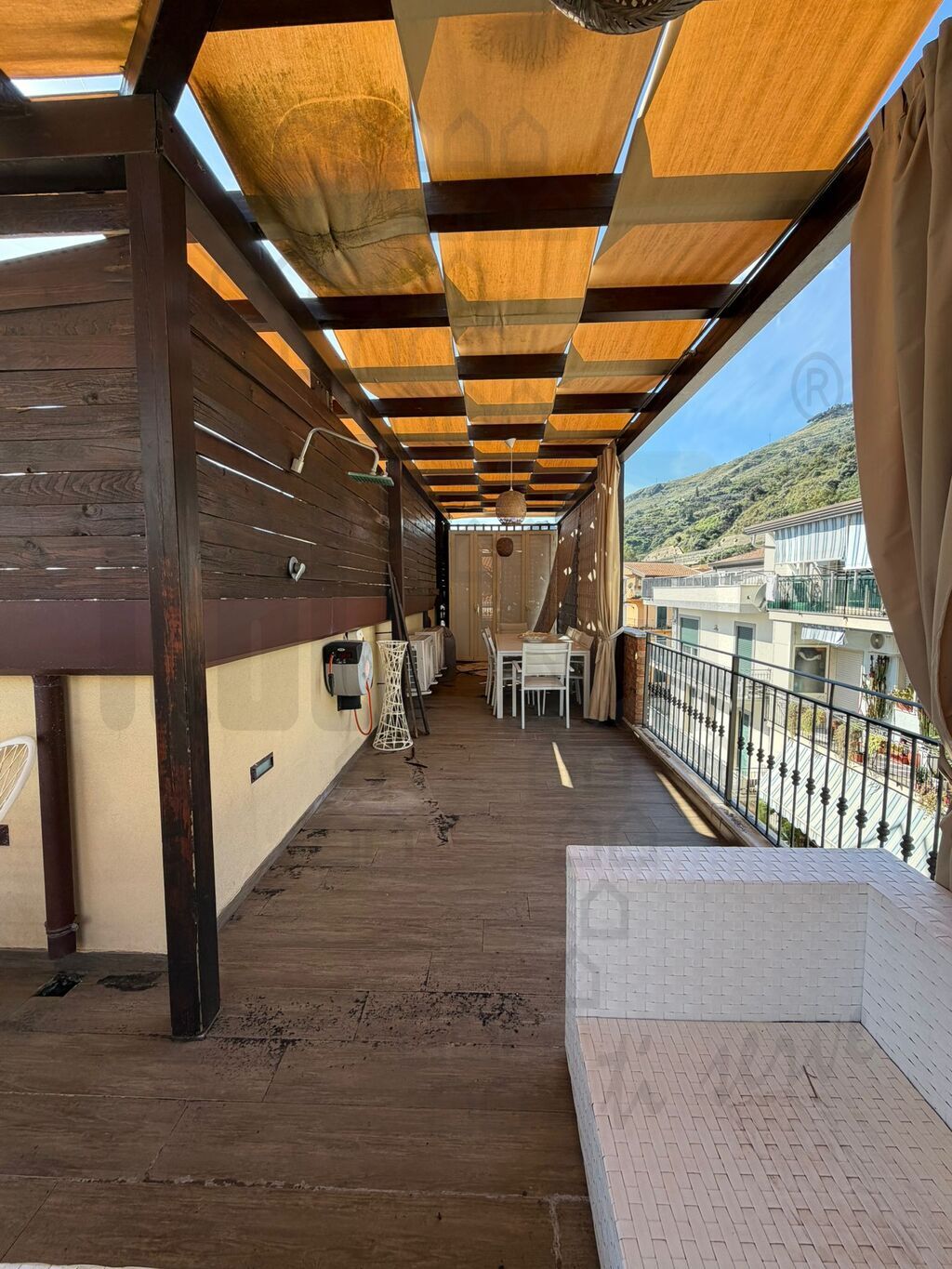 Taormina , fronte mare in complesso di recente costruzione , lussuoso attico con grande terrazzo a livello , composto da salone/cucina open Space , camera da letto con cabina armadio e wc . Ottime condizioni, panoramico.