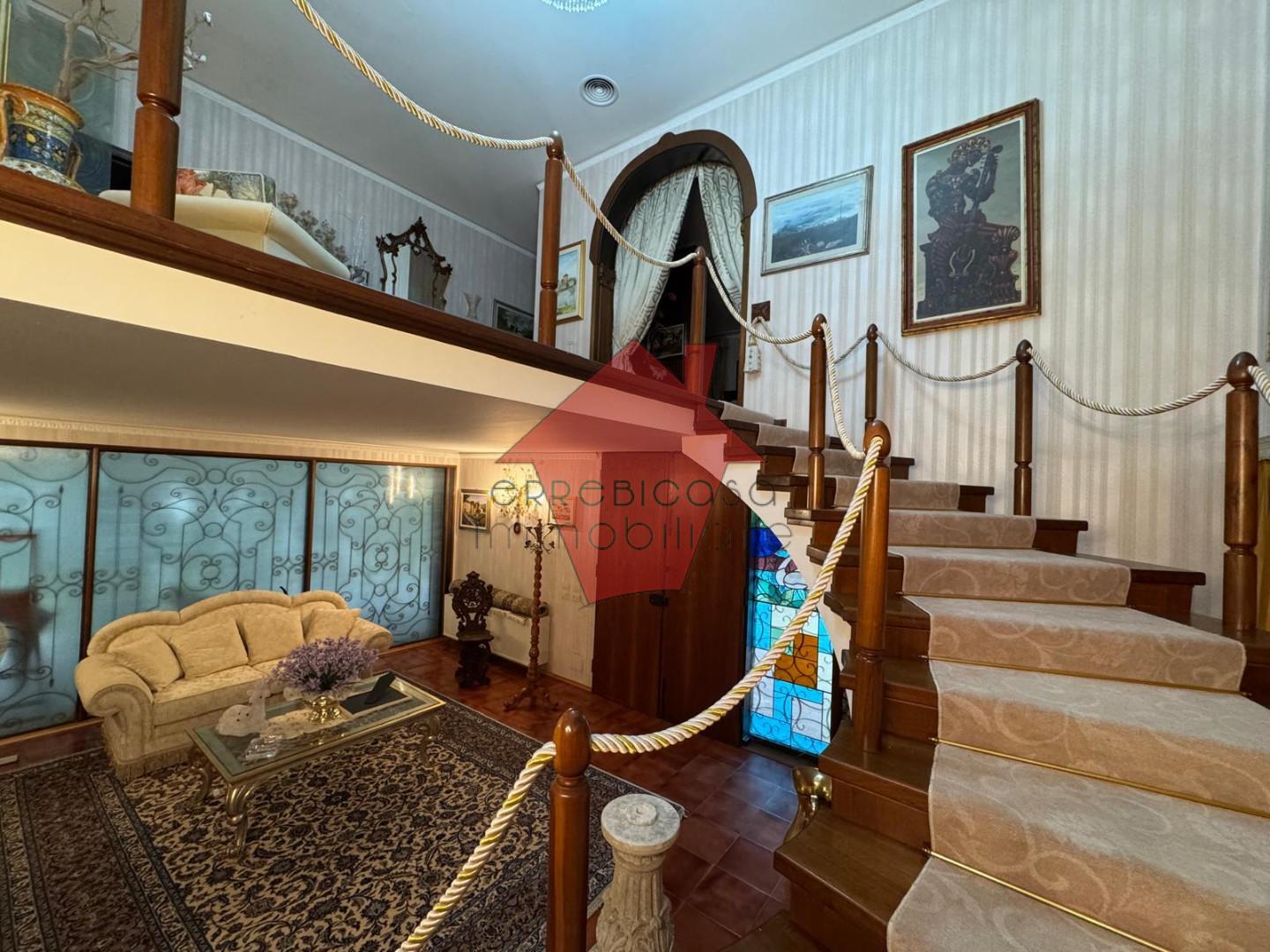Le persone - attraverso l'ampio loggiato - giungono all'elegante ingresso di oltre mq 35 in cui "ruba" totalmente la scena una fantastica scala elicoidale in materiale ligneo costruirta da artigiano; quest'ultima conduce al paino superiore in cui il soggiorno doppio di oltre 75 mq affianca la zona pranzo per ospiti ed il pranzo familiare (quest'ultimo attiguo alla cottura). Su piano lievemente sfalzato insiste la zona notte, costituita questa da: 3 camere da letto e bagno (realizzabile facilmente un secondo servizio igienico a questo piano). il piano terreno è invece costituito da tre vani dall'ampia metratura dei quali una seconda cucina, dimpegno e bagno.