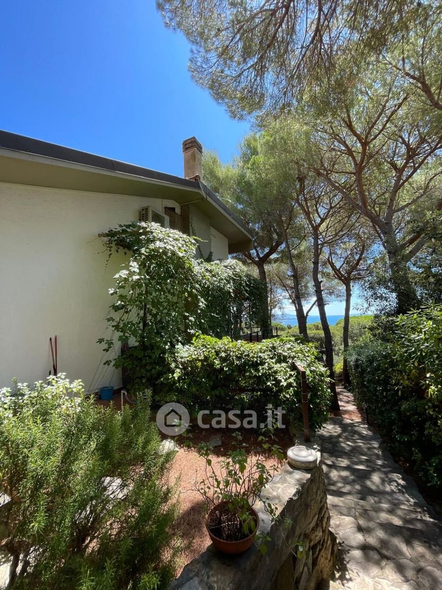 La proprietà è immersa in un lussureggiante parco privato di ben 600 mq che garantisce assoluta privacy e tranquillità. Con una superficie complessiva di circa 290 mq, la villa è suddivisa in due unità immobiliari completamente indipendenti, offrendo grande flessibilità d'uso. L'Unità Immobiliare Principale è di 225 mq e si sviluppa su due livelli: il primo livello è composto da un accogliente ingresso, un ampio salone impreziosito da un camino, con accesso diretto all'imponente terrazza panoramica di 60 mq, e una cucina abitabile separata; il secondo livello ospita la zona notte con tre camere da letto matrimoniali di cui una con cabina armadi e un locale di sgombero dalla quale si accede allo scannafosso elemento fondamentale che assicura l'isolamento e la salubrità delle pareti e dei pavimenti, due bagni completi, un ripostiglio e un'ulteriore ampia terrazza dalla quale si accede alle due camere anch'essa di 60 mq, contribuendo al totale complessivo di 120 mq di terrazze, di cui la principale regala una vista mare impareggiabile.