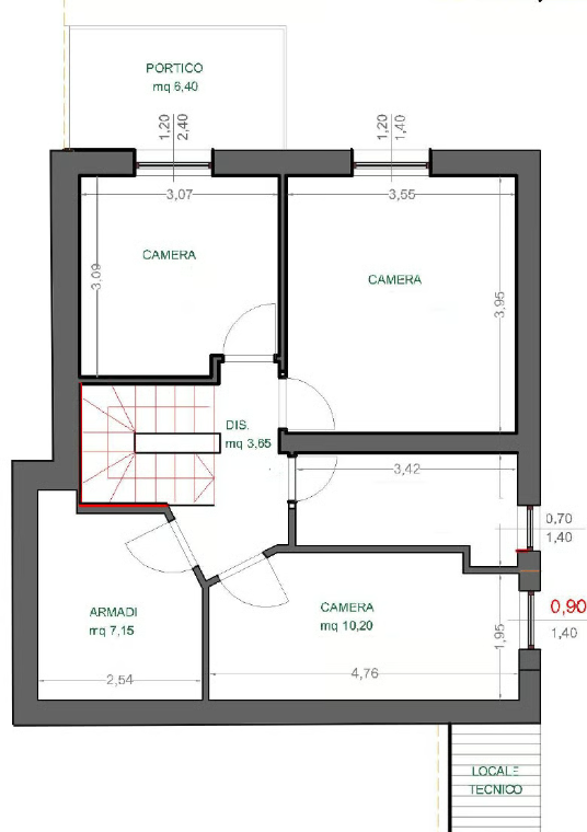 al piano superiore si trovano una camera matrimoniale, una camera doppia, una camera singola con terrazzina, un secondo bagno finestrato e una spaziosa cabina armadi.