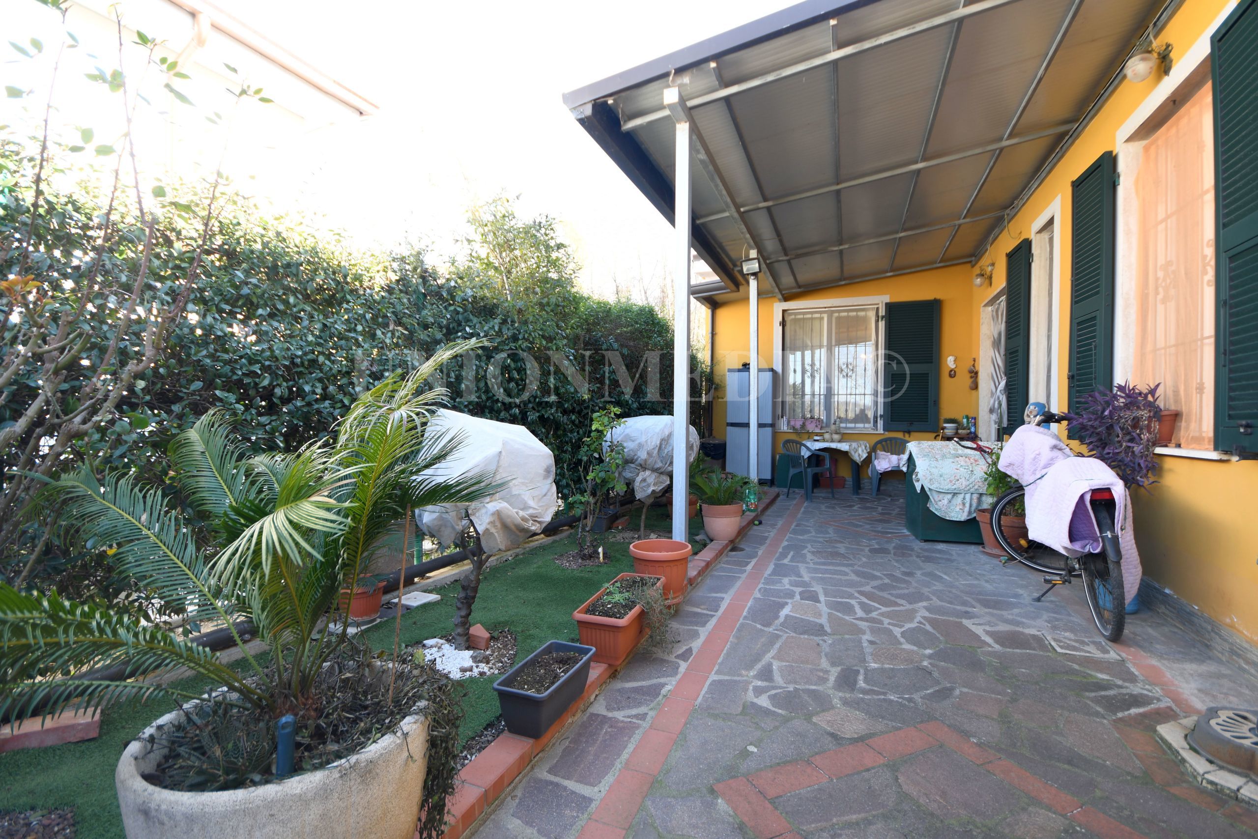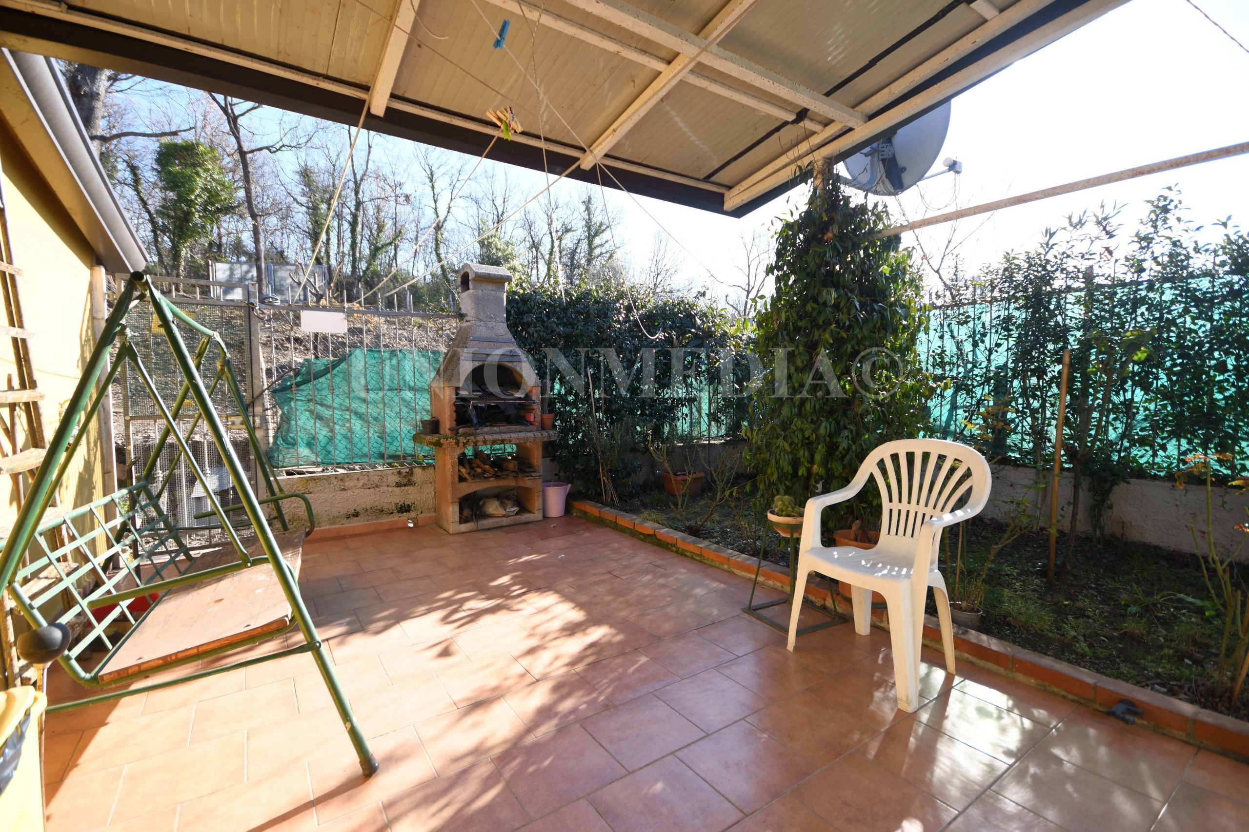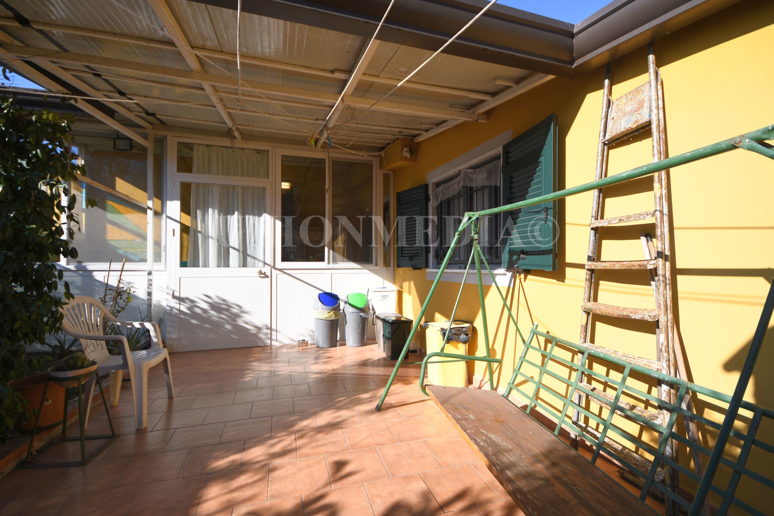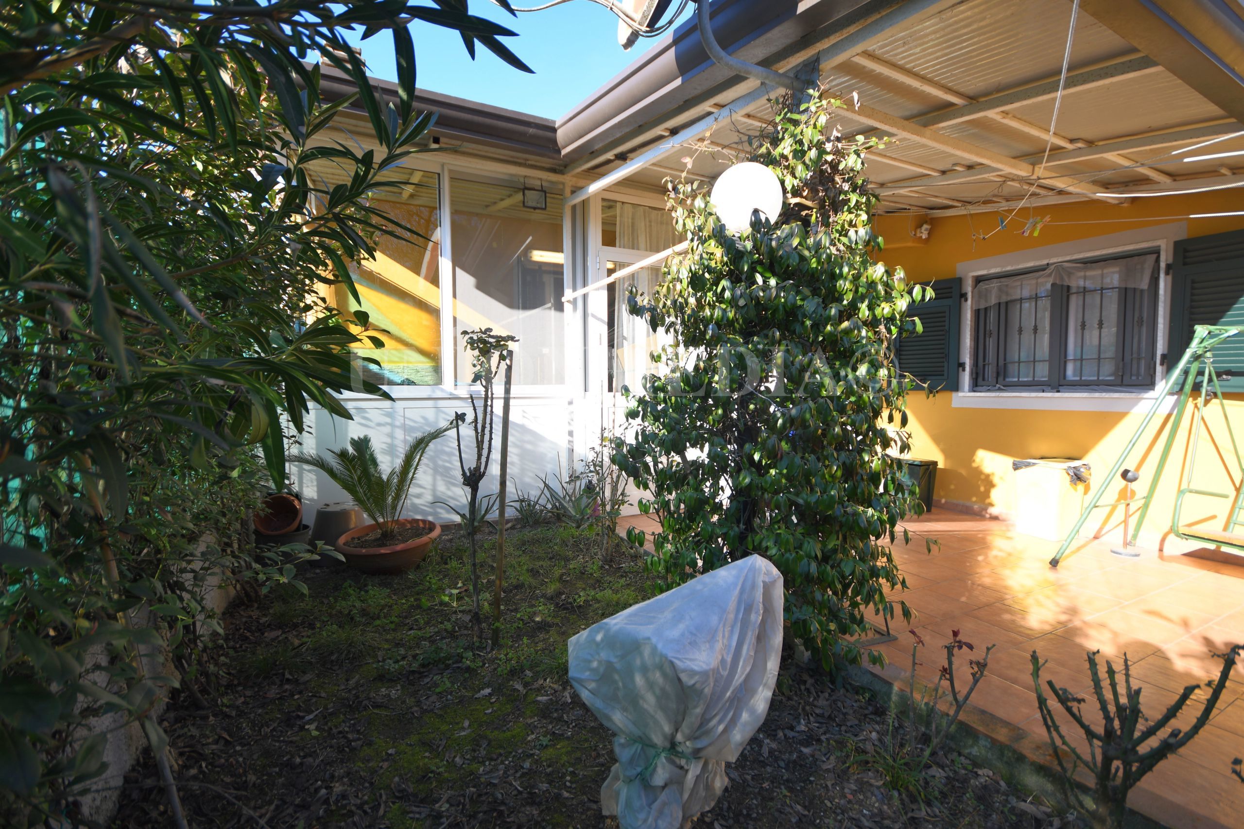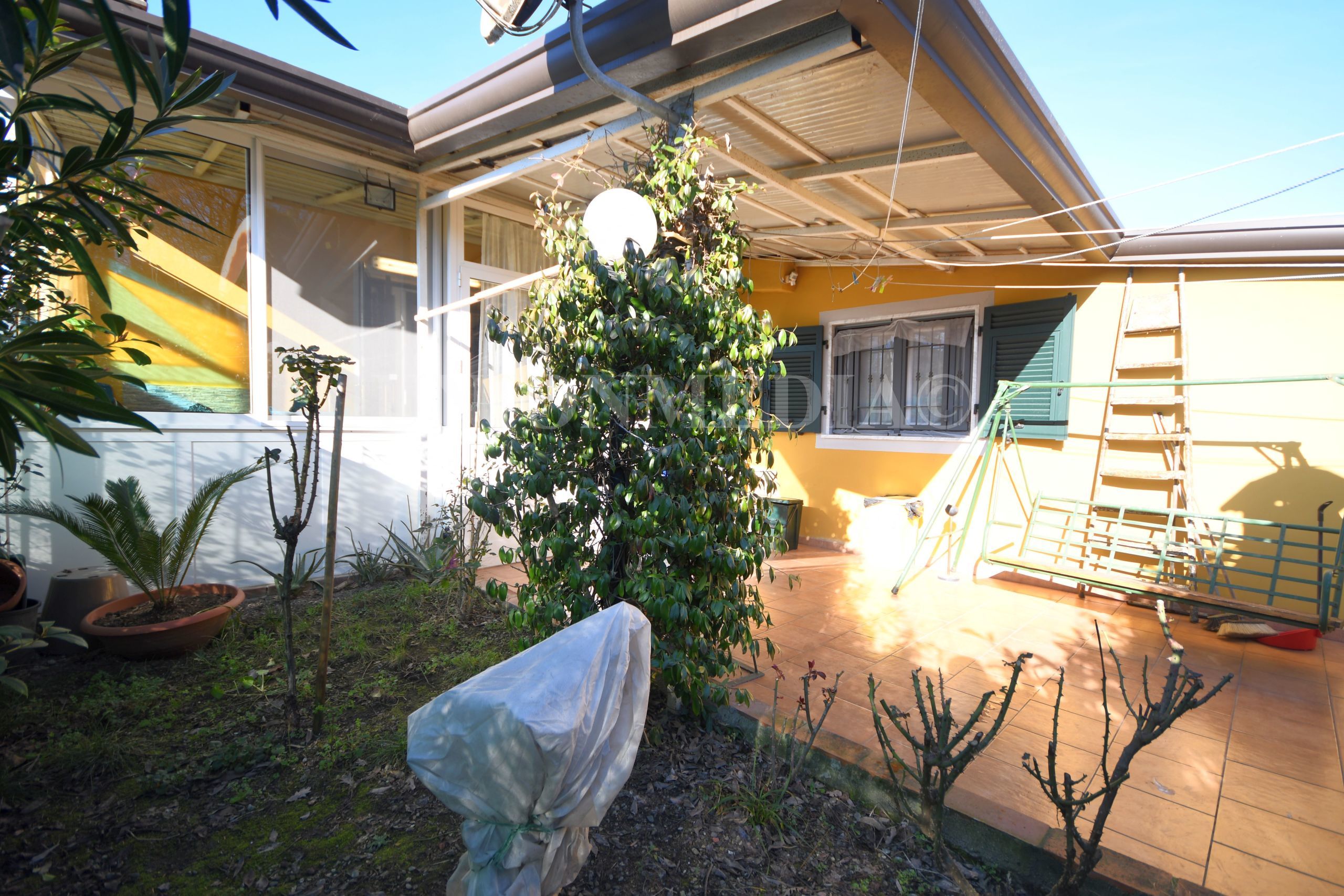 L'immobile è composto da ingresso, grande disimpegno/soggiorno, ampio soggiorno con camino, cucina abitabile con porta finestra su veranda e corte interna, camera matrimoniale con bagno privato con doccia idromassaggio, camera doppia, bagno con vasca idromassaggio, due ripostigli, ulteriore open space di mq 40. Frastaglio di giardino e corte privata recintata di mq 100 circa, carrabile.