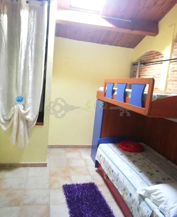 Si accede alla zona notte composta da: 1 camera matrimoniale con vista su collina, 1 camera con letti a castello, 1 camera singola e 1 bagno completo finestrato.